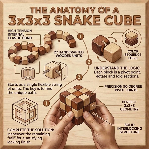 - Engaging Brain Teaser: Challenge your mind with this classic 3x3x3 Wooden Snake Cube Puzzle, a captivating brain teaser that's perfect for all ages and provides hours of entertainment.
