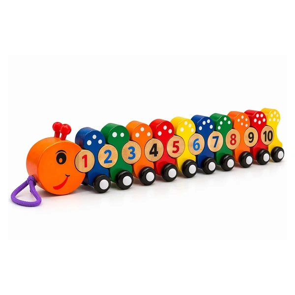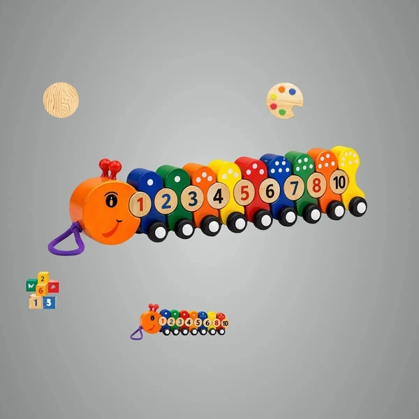 - Charming Learning Toy: Introduce your little one to numbers and colors with this delightful Wooden Caterpillar Pull-Along Toy, handcrafted from natural wood and painted in bright, eye-catching colors.