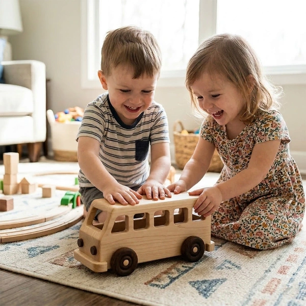 ClyPa Wooden Camper Van Toy โ Handmade Eco-Friendly Wooden Bus | Montessori Toy Car for Kids